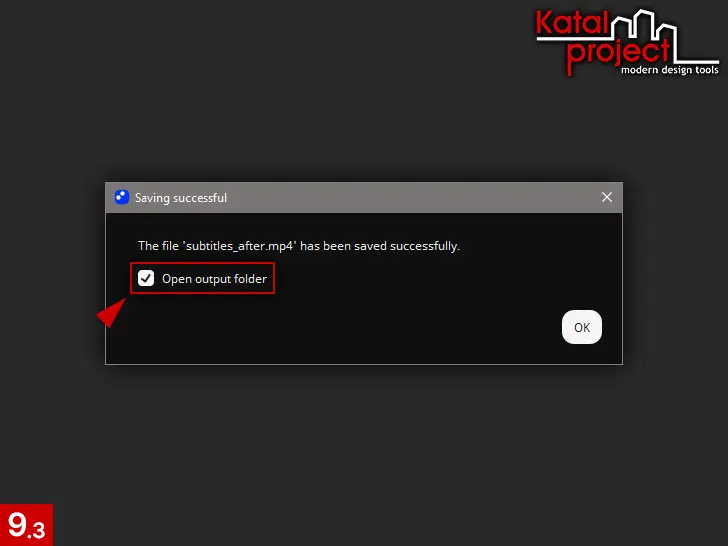 А когда видео будет готово, на экране появится окошко Saving successful (Сохранение завершено). В нем отмечаем флажок Open output folder (Открыть в папке) и жмем OK – попадаем в папку, в которую сохранен готовый ролик с наложенными титрами. Скачать же пример из урока можно по ссылке.