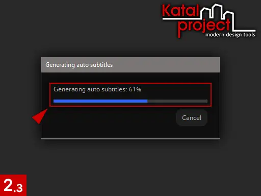 Нажатием кнопки Generate (Создать) запускаем автоматическую генерацию субтитров. На протяжении всего процесса на экране будет «висеть» окошко Generating auto subtitles (Создание автосубтитров) с индикатором его выполнения.