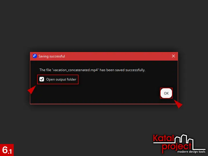 По завершении операции на экране появится другое окошко – Saving successful (Сохранение завершено). В нем отмечаем галочку Open output folder (Открыть в папке) и нажимаем кнопку OK. В результате попадаем в Проводник Windows, в папку с готовым роликом, который можно сразу просмотреть…