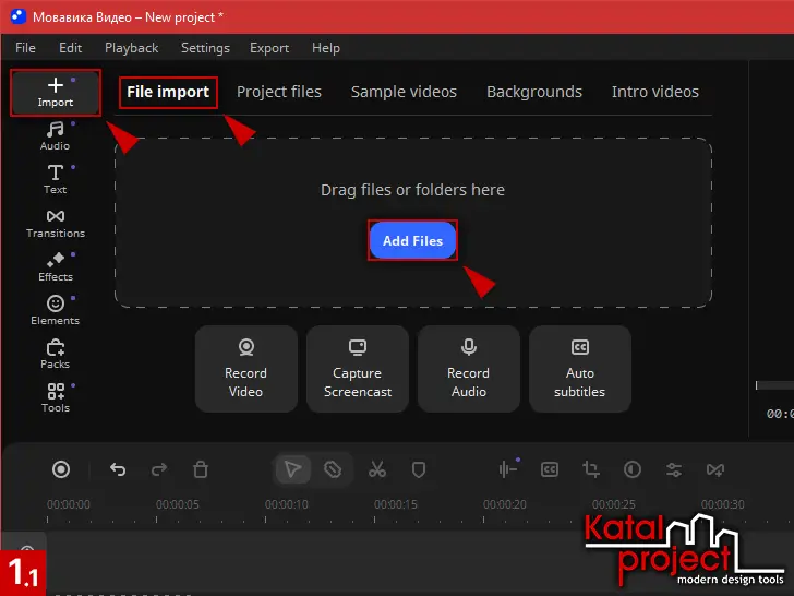 Import (Импорт), в разделе File import (Импорт файлов) нажимаем кнопку Add Files (Добавить файлы). В открывшемся диалоговом окне Open Media Files (Открыть медиафайлы) находим исходные видеофайлы, скачать которые можно по ссылке, выделяем их и нажимаем кнопку Open (Открыть).