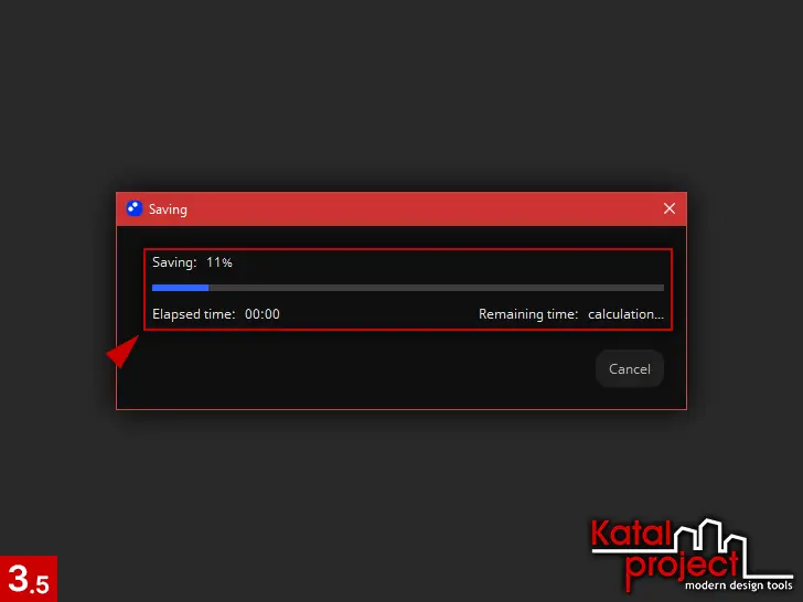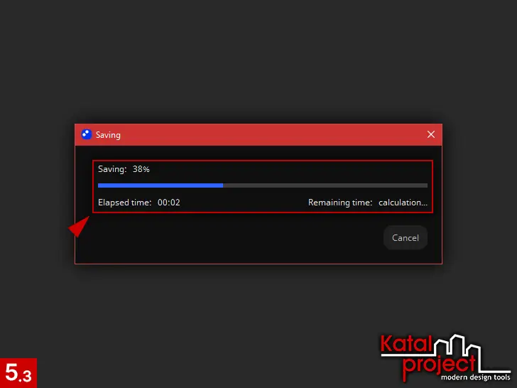 Нажатием кнопки Start (Старт) запускаем экспорт, в процессе которого на экране будет отображаться окошко Saving (Сохранение) с индикатором выполнения.